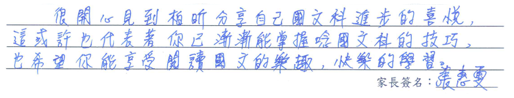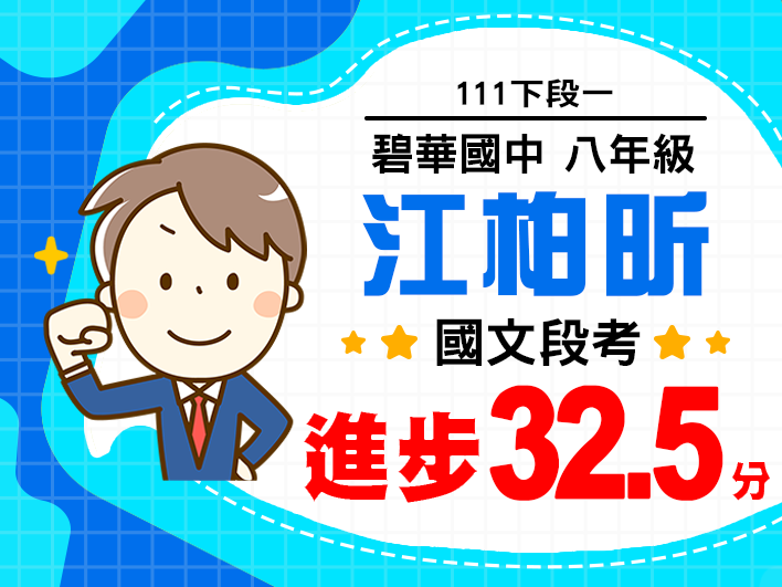 【學生心得分享】 經過上次考試的經驗,我知道自己哪裡沒有準備好,所以我就開始加強這幾個部份,因此有了這次的成績,我覺得還好是在段考沒準備好,如果是在會考,就沒有重新準備加強的機會了。 【家長真誠推薦】 很開心見到柏昕分享自己國文科進步的喜悦,這或許也代表著你已漸漸能掌握唸國文科的技巧,也希望你能享受閱讀國文的樂趣,快樂的學習。