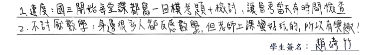 2.不討厭數學:身邊很多人都反感數學,但老師上課蠻好玩的,所以有興趣!