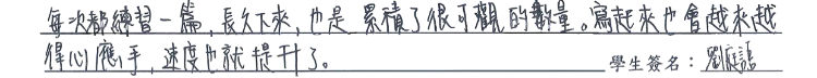 每次都練習一篇,長久下來,也是累積了很可觀的數量。寫起來也會越來越得心應手,速度也就提升了。